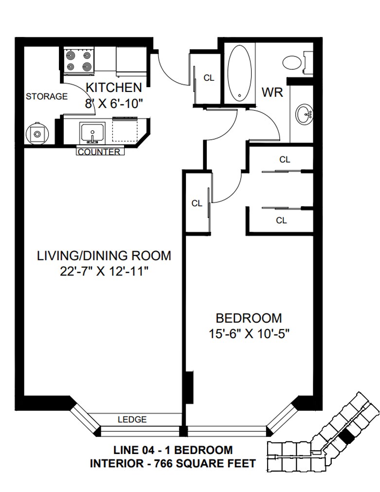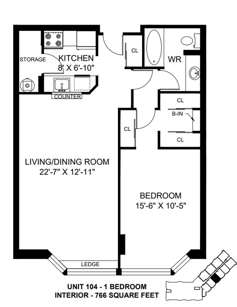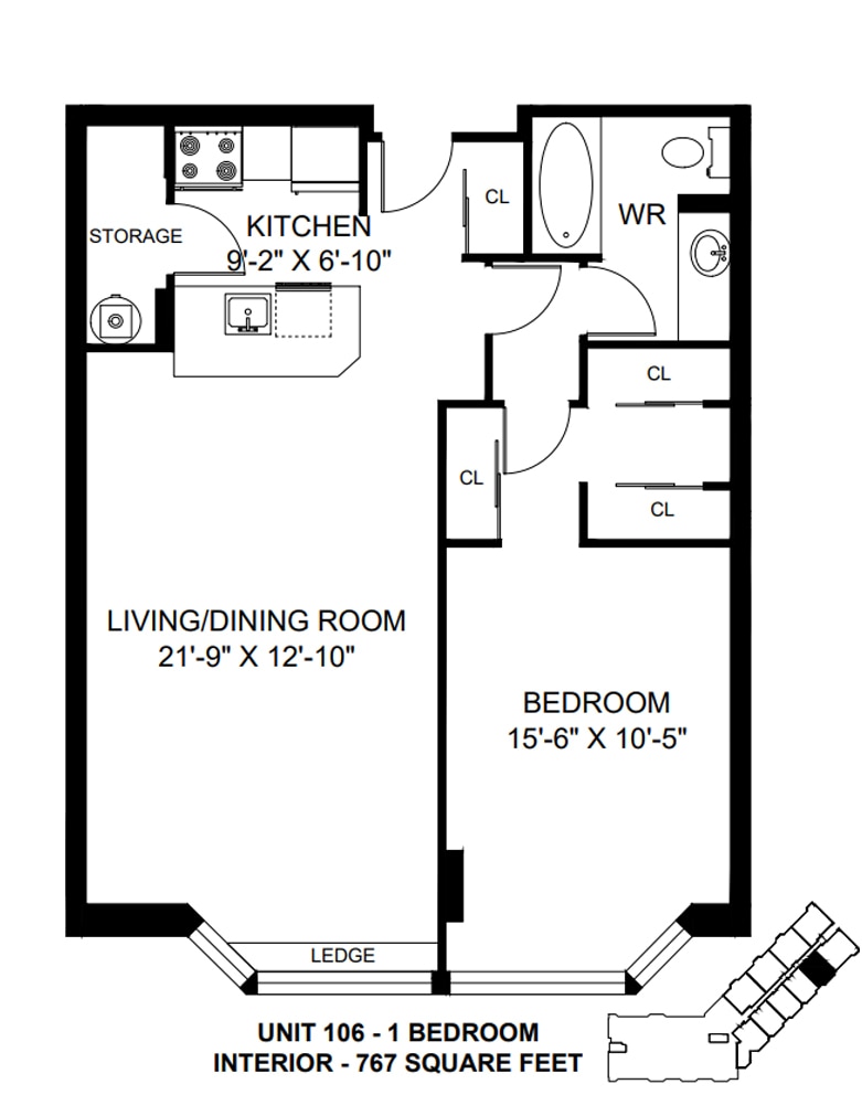1 Dormitorio, 1 Baño, 715 pies²Disponible AhoraGalería del Modelo