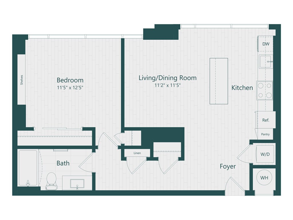 Estudio, 1 Baño, 484 pies²Disponible AhoraGalería del Modelo