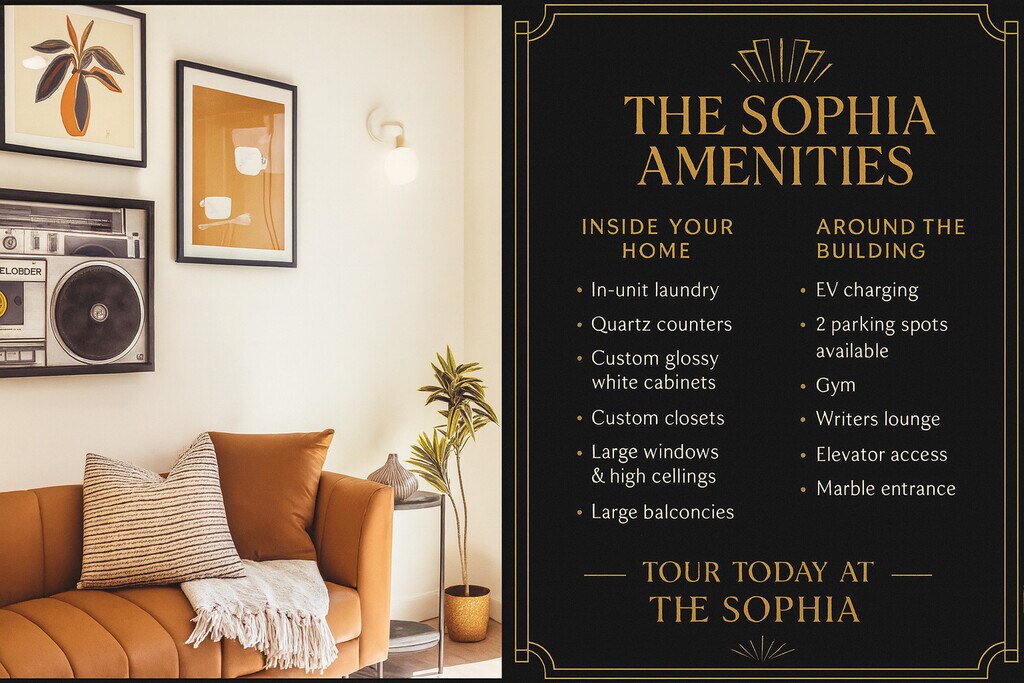* One Month Free Rent plus $500 Look and Lease Special * She had curves in all the right places — the kind that catch the light just so when the sun hits Sunset Blvd. Her name? Sophia. Tucked in the beating heart of Hollywood, The Sophia is a 28-unit building where the elegance of 1930s architecture dances with the polish of modern design. Built in 2023 but born of a bygone era, her deco-inspired façade glows under the California moonlight — beckoning creatives, dreamers, and dealmakers home. Inside, the lines are clean, the finishes sharp. Spacious open floor plans flow into sleek, high-gloss kitchens outfitted with stainless steel appliances, smooth quartz counters, and minimalist cabinetry. Some units include center islands — just the place to pour a nightcap or hash out a third-act twist. Floor-to-ceiling sliders open wide onto massive private decks, perfect for morning espresso or twilight scripts. And if you’re lucky? Your view includes Capitol Records, the Hollywood Sign, and the glittering skyline of your next chapter. Each unit offers bright bedrooms, generous closets, and bathrooms with modern vanities and marble-style tile that whispers luxury without shouting it. Throughout, pale wide-plank floors keep things grounded while natural light steals the scene. Downstairs, off the lobby, the Writer’s Lounge offers velvet chairs and a library curated for inspiration — it’s where screenplays are born and ideas linger in the air like perfume — smoky, romantic, and full of story. There’s also a fitness center, bike storage, and two-car parking (a true LA love letter). Highlights Include: • Massive private decks with views of Capitol Records & Hollywood Sign (select units) • Sleek kitchens with upgraded stainless steel appliances • Spacious open layouts and large closets • Lounge with curated library • Gym, bike storage, EV charging and parking for two • Built in 2024 with Art Deco-inspired design • Pet friendly, because of course she is The Sophia isn’t just an address. She’s a mood. A lifestyle. A story in motion. Hollywood rewards the bold. Book a tour, walk the deck, feel the sun — and fall for Sophia. Details: One year minimum lease $1000 Security Deposit for credit scores 700+ $2500 Security Deposit for credit scores 650+ Parking rent $125.00 per month Pet rent $75.00 per dog/ $50.00 per cat