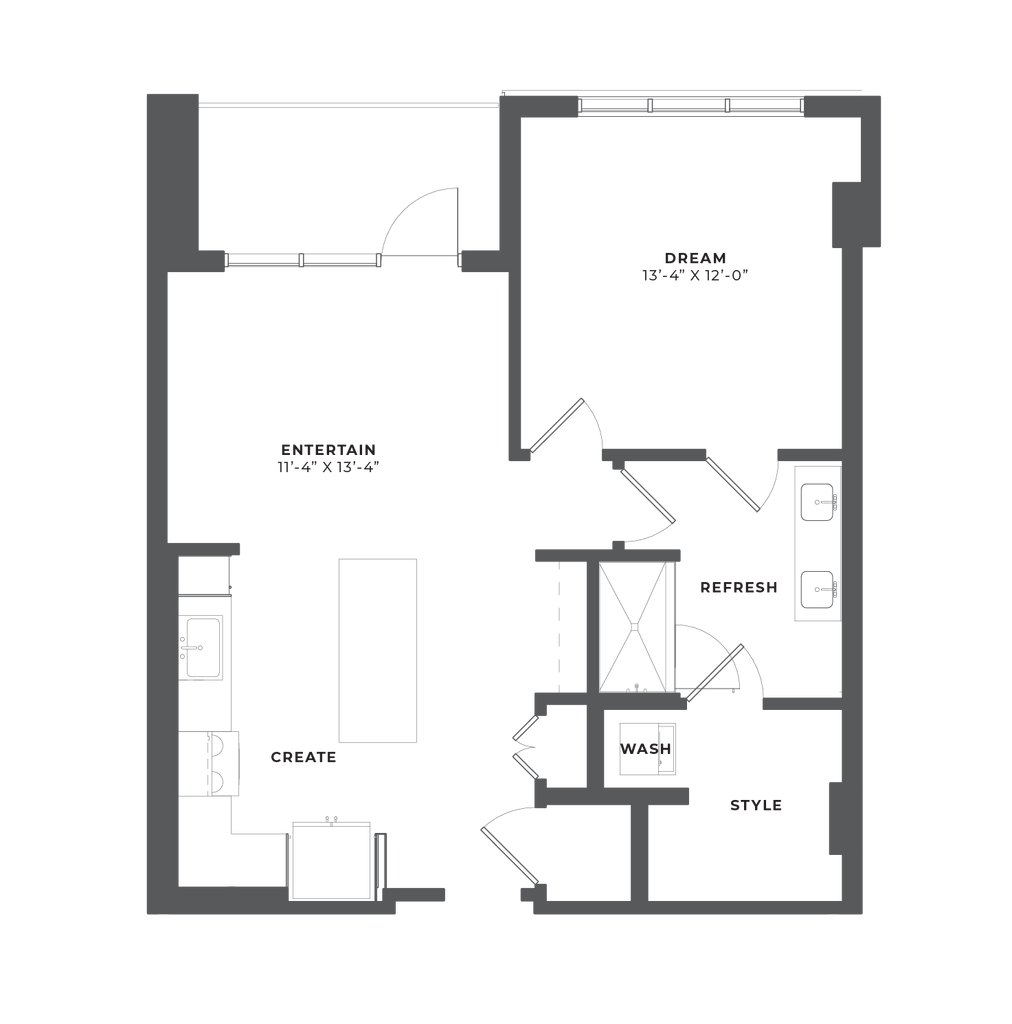 1 Dormitorio, 1 Baño, 756 pies²Disponible AhoraGalería del Modelo