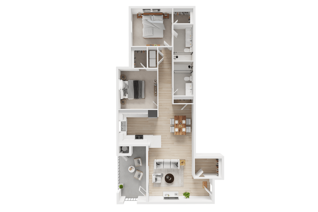 1x1 B - Plano 1 Unidad de apartamento: 12-201Modelo de apartamento: 1x1 B$2,0841 Dormitorio, 1 Baño, 774 sq ftDisponible February 28, 20261x1 C