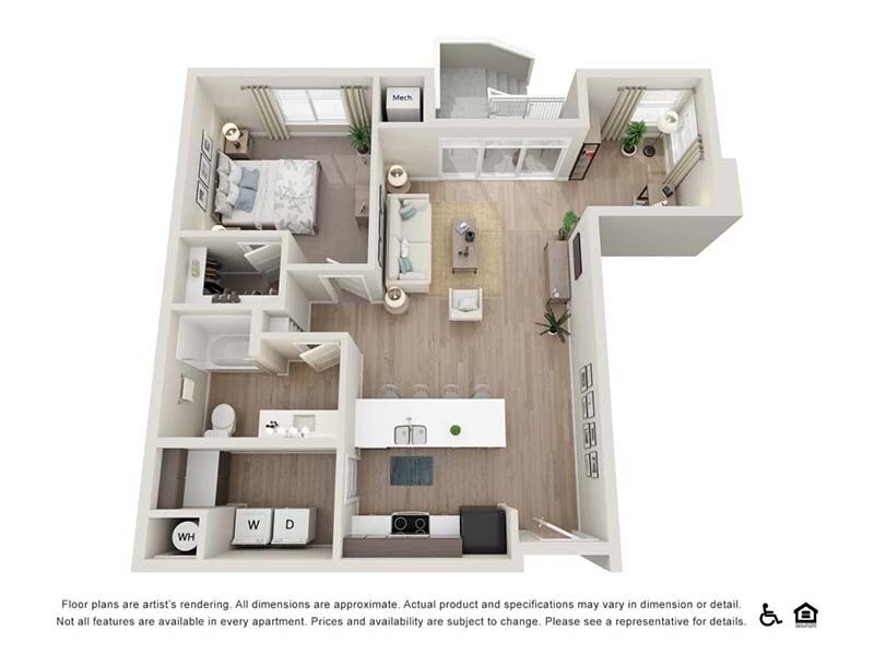 Modelo de apartamento: 1x1-727Llame para Precios1 Dormitorio, 1 Baño, 727 sq ftNo Disponible![]()