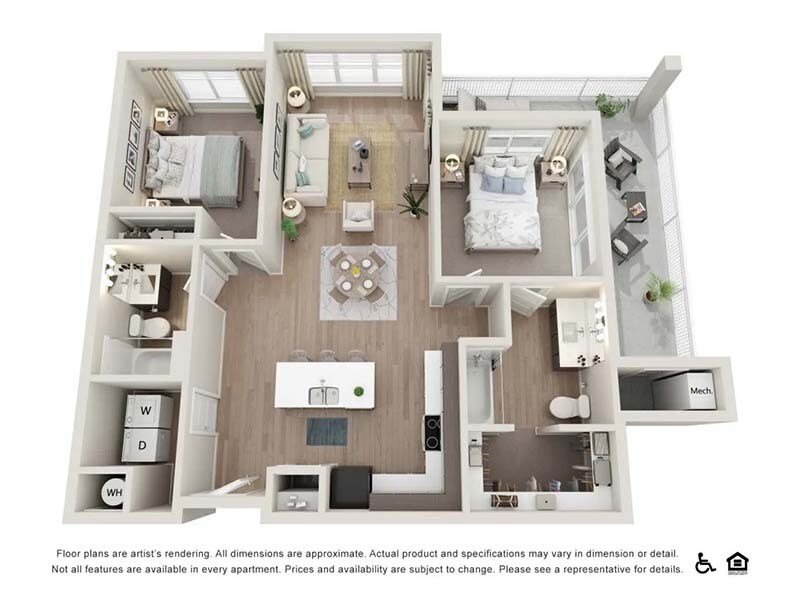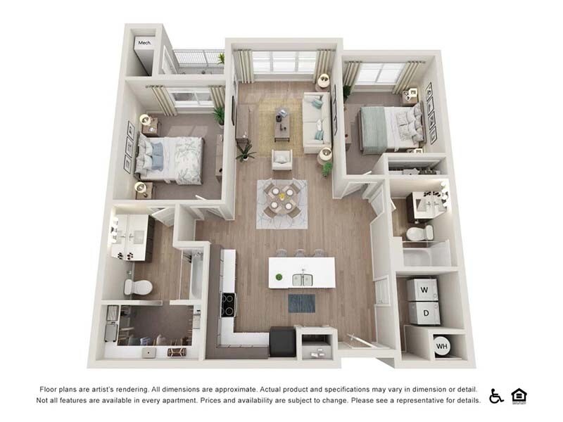 Modelo de apartamento: 2x2-954Desde $1,5792 Dormitorios, 2 Baños, 954 sq ftDisponible Ahora![]()