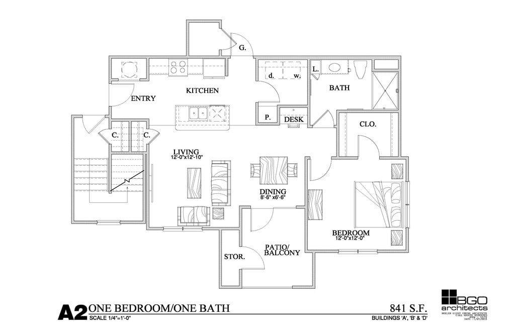 1 Dormitorio, 1 Baño, 841 pies²Galería del Modelo