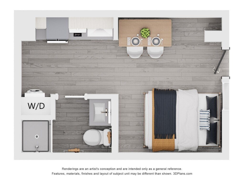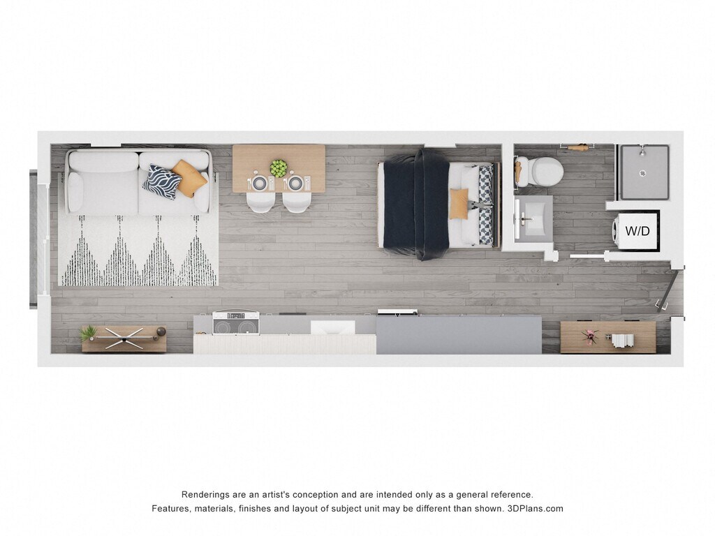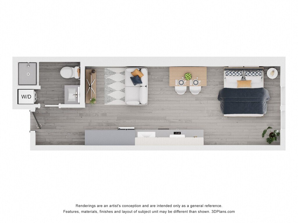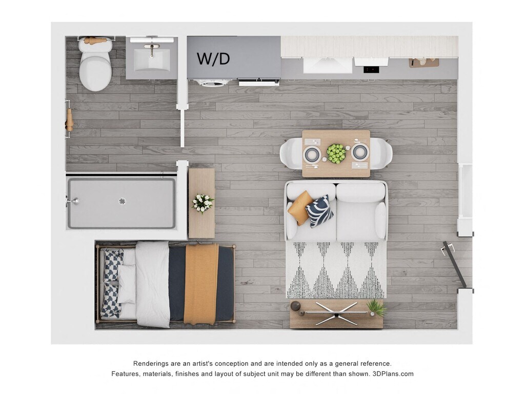 Estudio, 1 Baño, 378-385 pies²Galería del Modelo