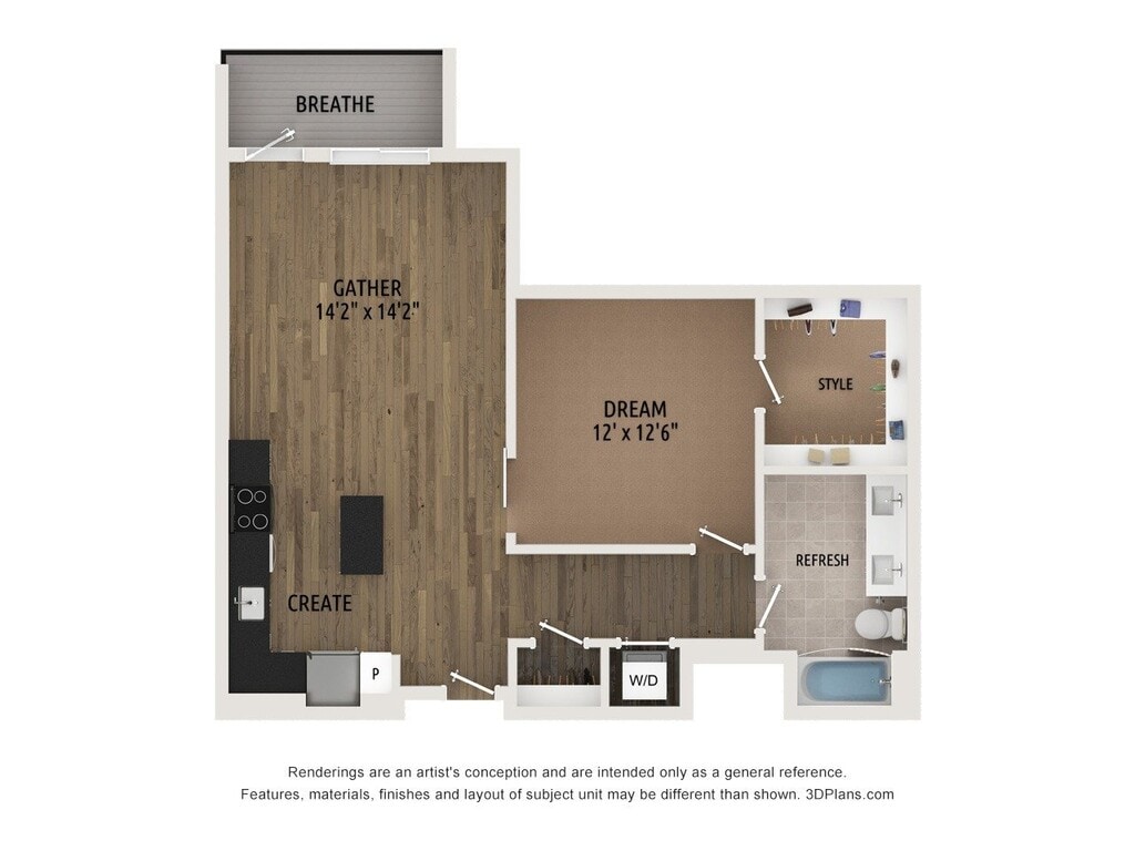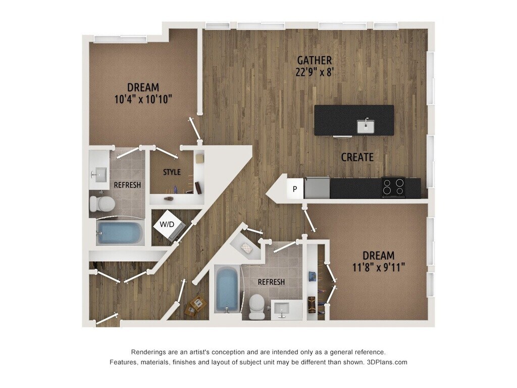 1 Dormitorio, 1 Baño, 647 pies²Disponible AhoraGalería del Modelo