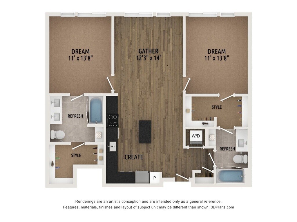 Modelo de apartamento: A3 -Affordable WDU 80 AMIDesde $2,1241 Dormitorio, 1 Baño, 647 sq ftDisponible Ahora![]()