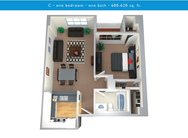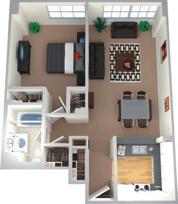 1 Dormitorio, 1 Baño, 610-665 pies²Disponible Dec 10Galería del Modelo