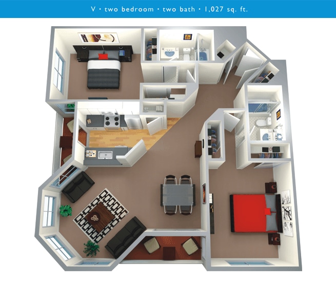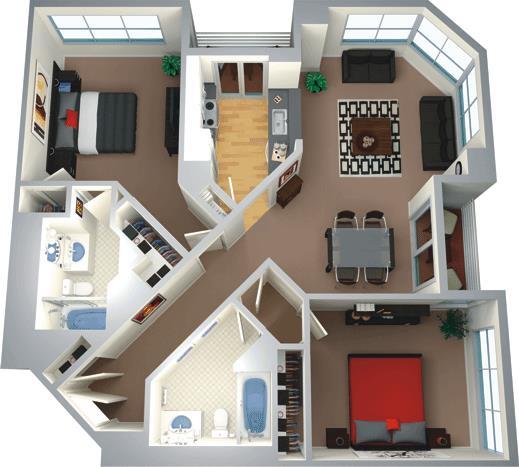 Modelo de apartamento: BDesde $3,9001 Dormitorio, 1 Baño, 610-665 sq ftDisponible December 10, 2025PlanosFotos![]()