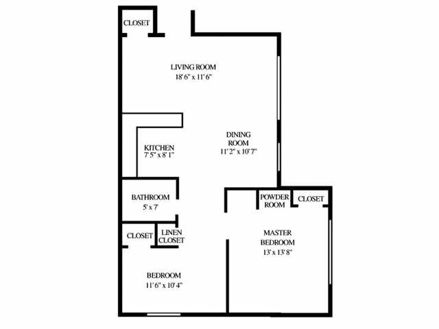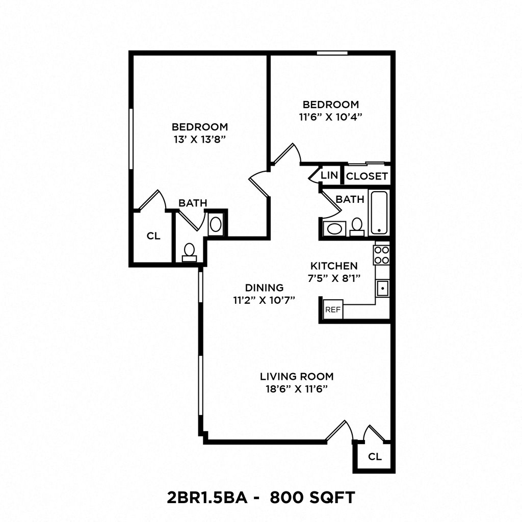 Two Bedroom 1.5 Bath - 800 sqft