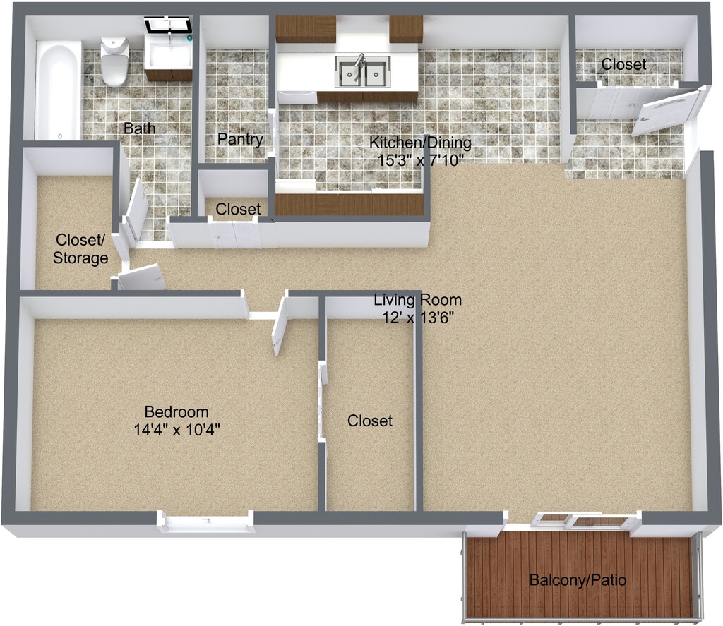 2 Dormitorios, 1 Baño, 815 pies²Disponible AhoraGalería del Modelo