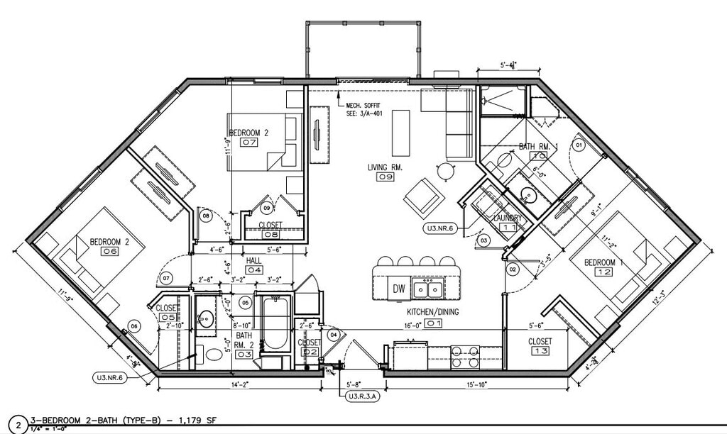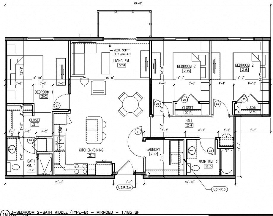 3 Dormitorios, 2 Baños, 1179-1185 pies²Galería del Modelo