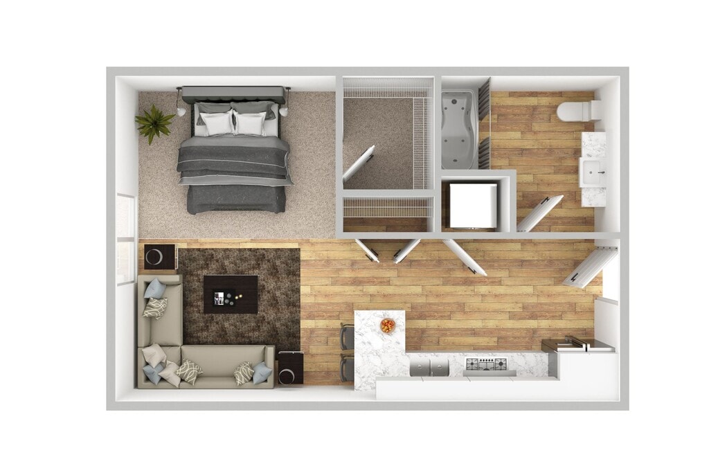 Studio Apartment - Imagen 10 Los planos son representaciones artísticas. Todas las dimensiones son aproximadas. El producto y las especificaciones reales pueden variar en tamaño o detalle. No todas las características están disponibles en cada vivienda en alquiler. Por favor, consulta con un representante para obtener más detalles.