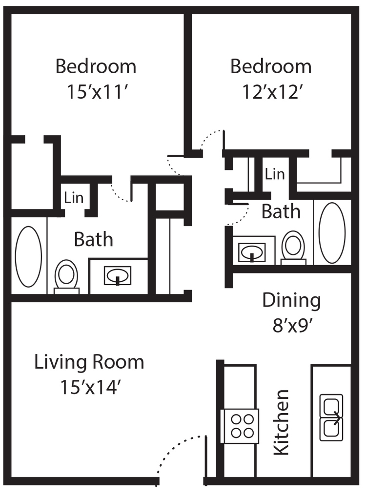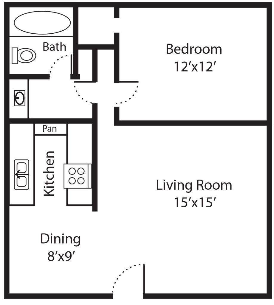 1 Dormitorio, 1 Baño, 700 pies²Disponible AhoraGalería del Modelo