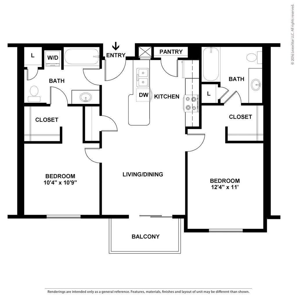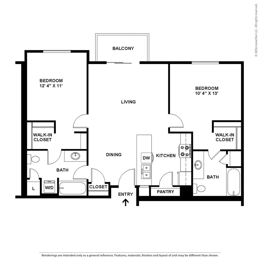 Modelo de apartamento: EDesde $1,1502 Dormitorios, 2 Baños, 895 sq ftDisponible AhoraPlanosFotos![]()