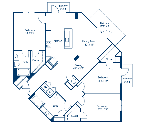 Modelo de apartamento: S1ADesde $1,367Estudio, 1 Baño, 597 sq ftDisponible Ahora![]()