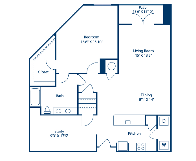 S1A - Plano 1 Unidad de apartamento: 489Modelo de apartamento: S1A$1,367Estudio, 1 Baño, 597 sq ftDisponible AhoraPlano: S1F