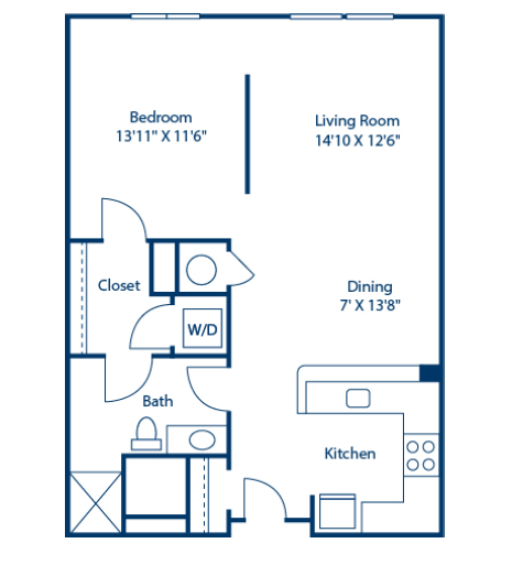 Estudio, 1 Baño, 597 pies²Disponible AhoraGalería del Modelo
