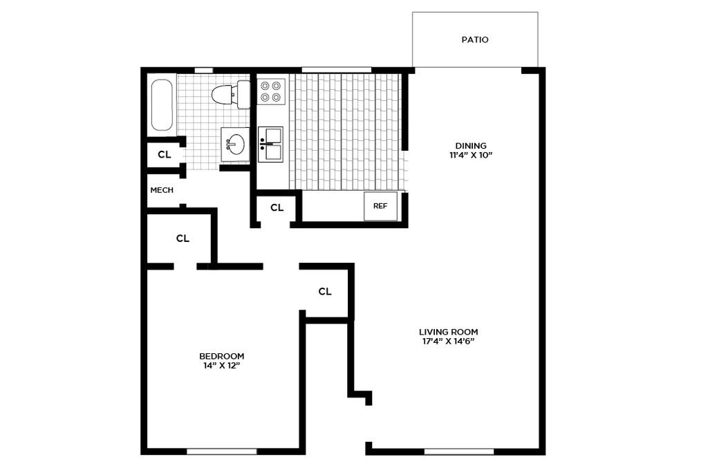 1 Dormitorio, 1 Baño, 724 pies²Disponible AhoraGalería del Modelo
