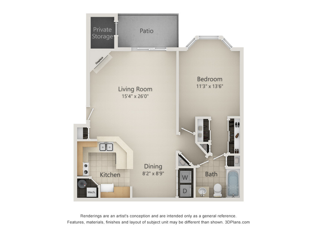 1 Dormitorio, 1 Baño, 726 pies²Galería del Modelo