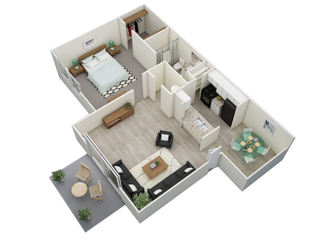 1 Dormitorio, 1 Baño, 747 pies²Disponible AhoraGalería del Modelo
