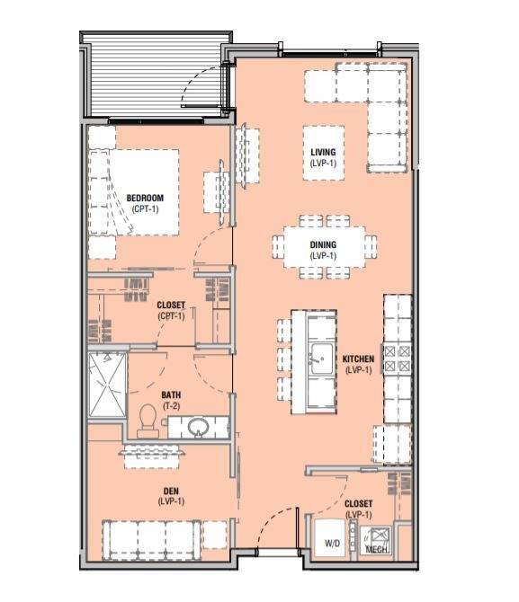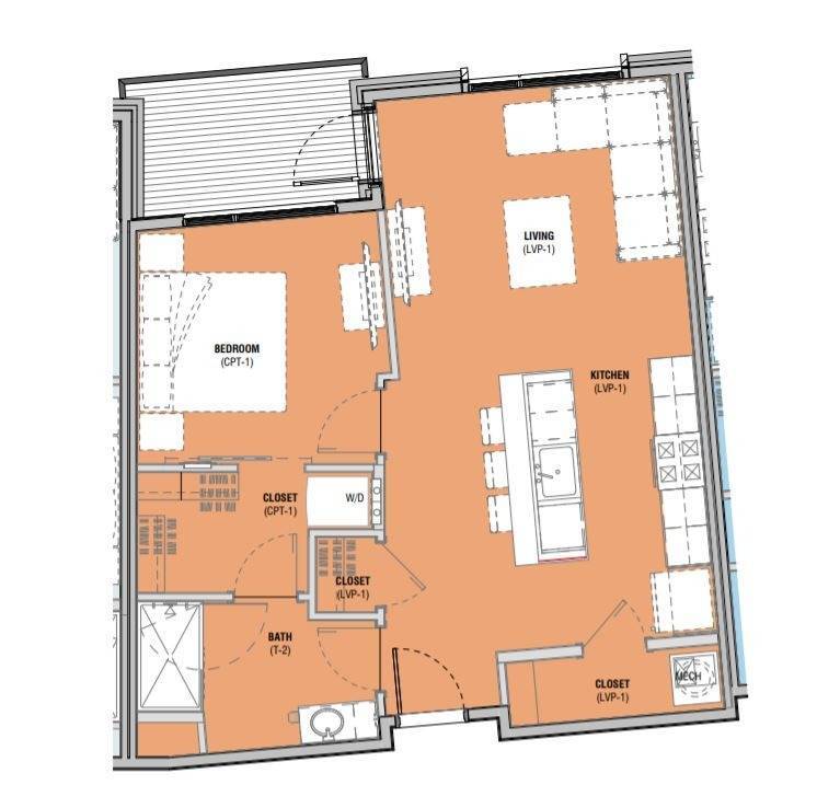 Estudio, 1 Baño, 594 pies²Disponible AhoraEl más grandeEsta opción tiene las unidades más grandes para este modeloGalería del Modelo