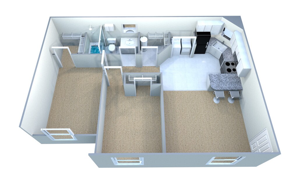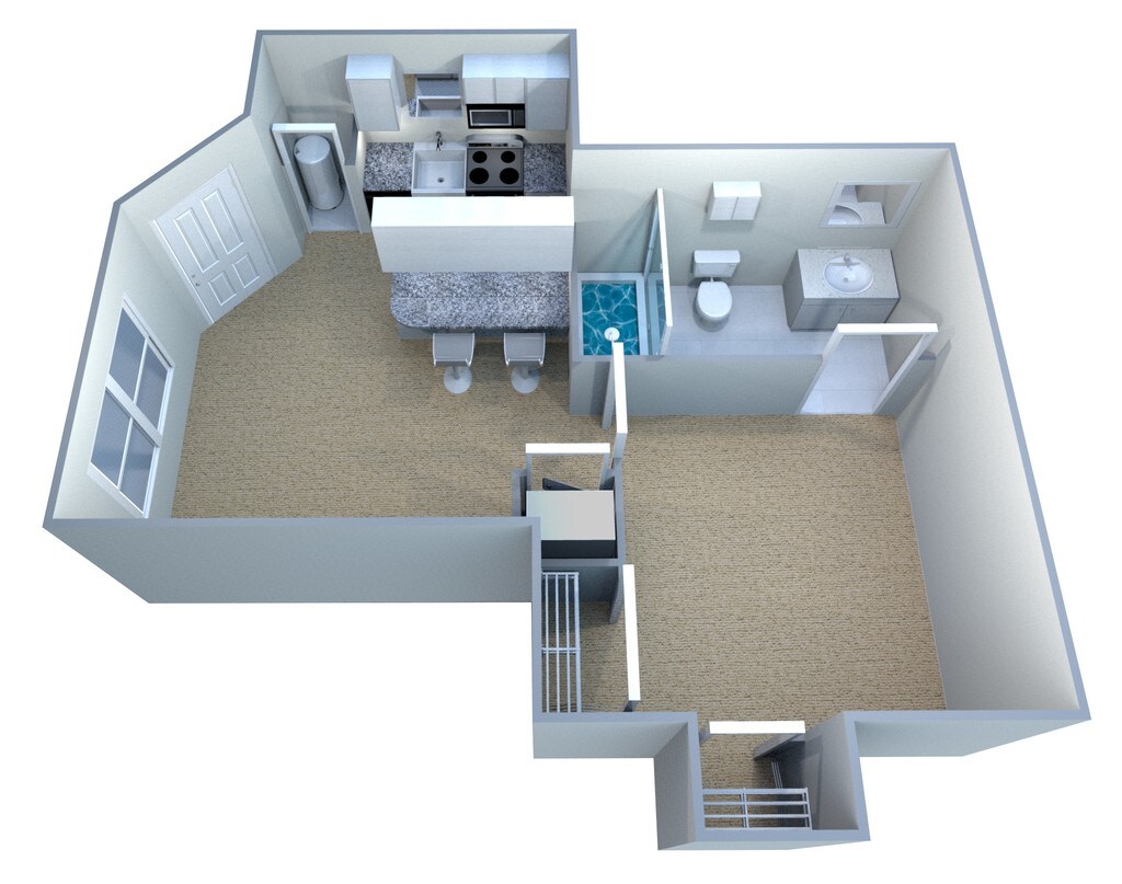 1 Dormitorio, 1 Baño, 625-627 pies²Disponible AhoraGalería del Modelo