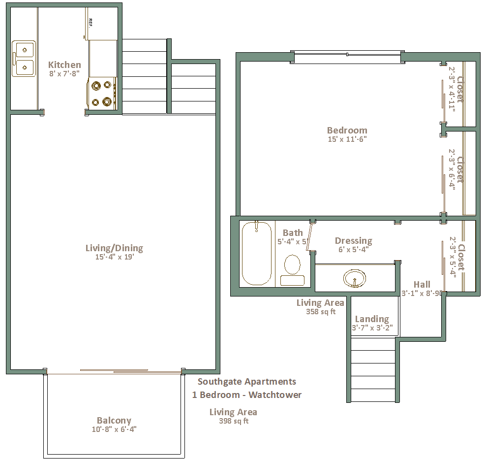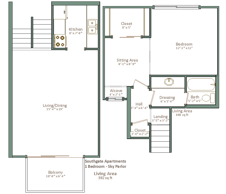 1 Dormitorio, 1 Baño, 569-895 pies²Disponible AhoraEl más grandeEsta opción tiene las unidades más grandes para este modeloGalería del Modelo