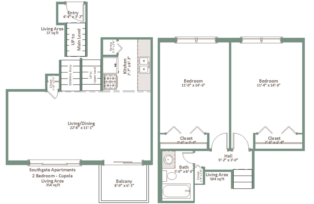 2 Dormitorios, 1 Baño, 569-702 pies²Disponible AhoraGalería del Modelo