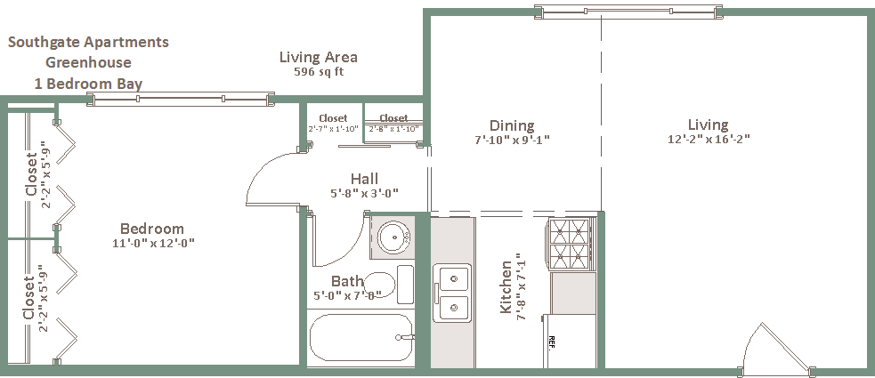 Modelo de apartamento: GreenhouseDesde $9841 Dormitorio, 1 Baño, 596-886 sq ftDisponible Ahora![]()