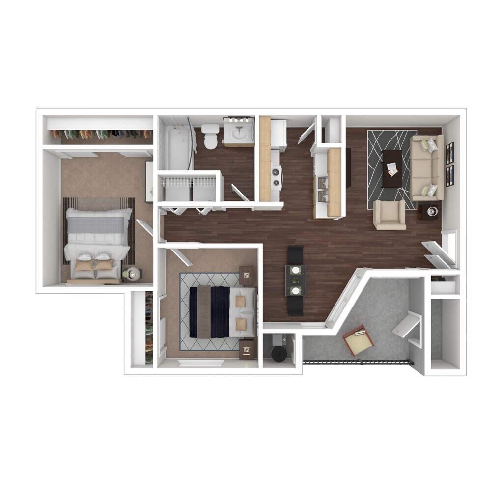 2 Dormitorios, 1 Baño, 796-800 pies²Disponible AhoraGalería del Modelo