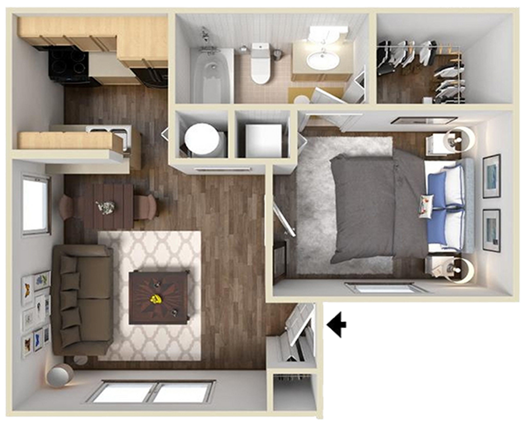 1 Dormitorio, 1 Baño, 450 pies²Disponible AhoraGalería del Modelo