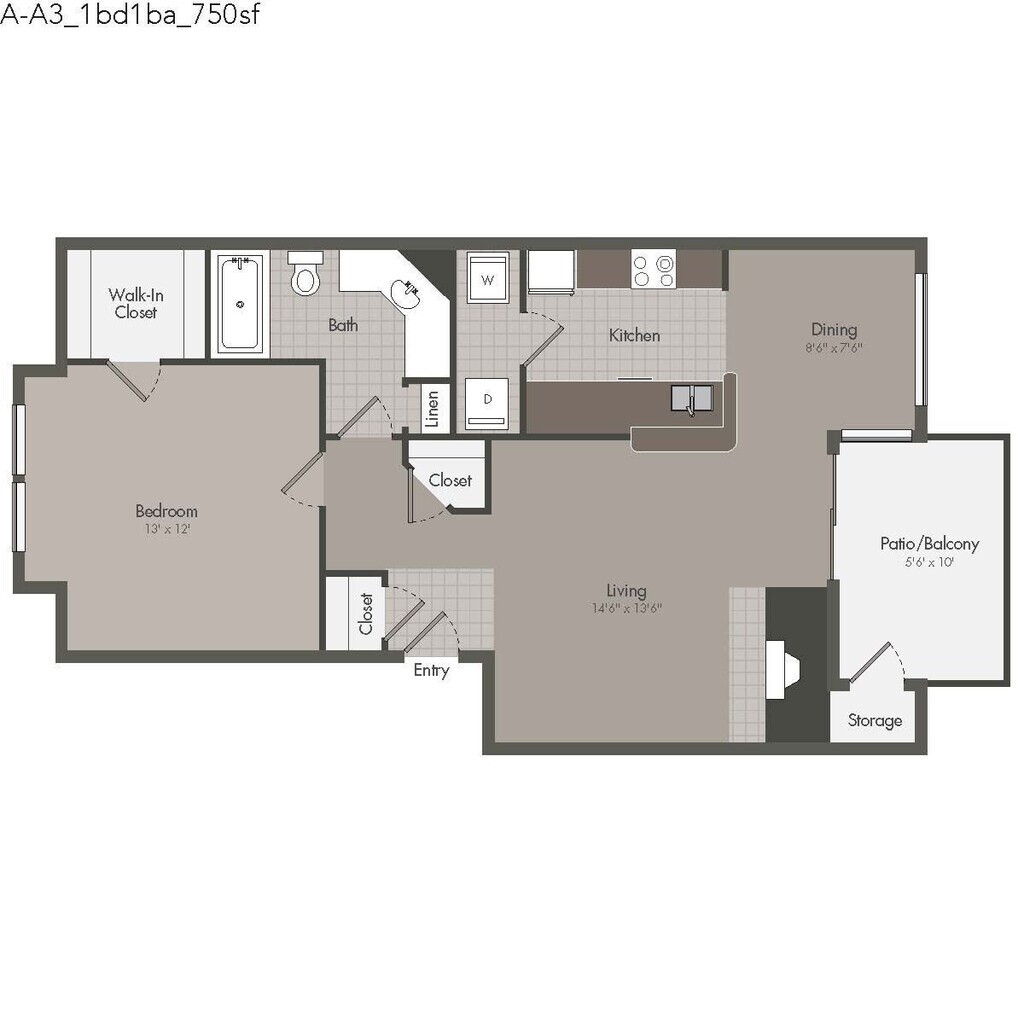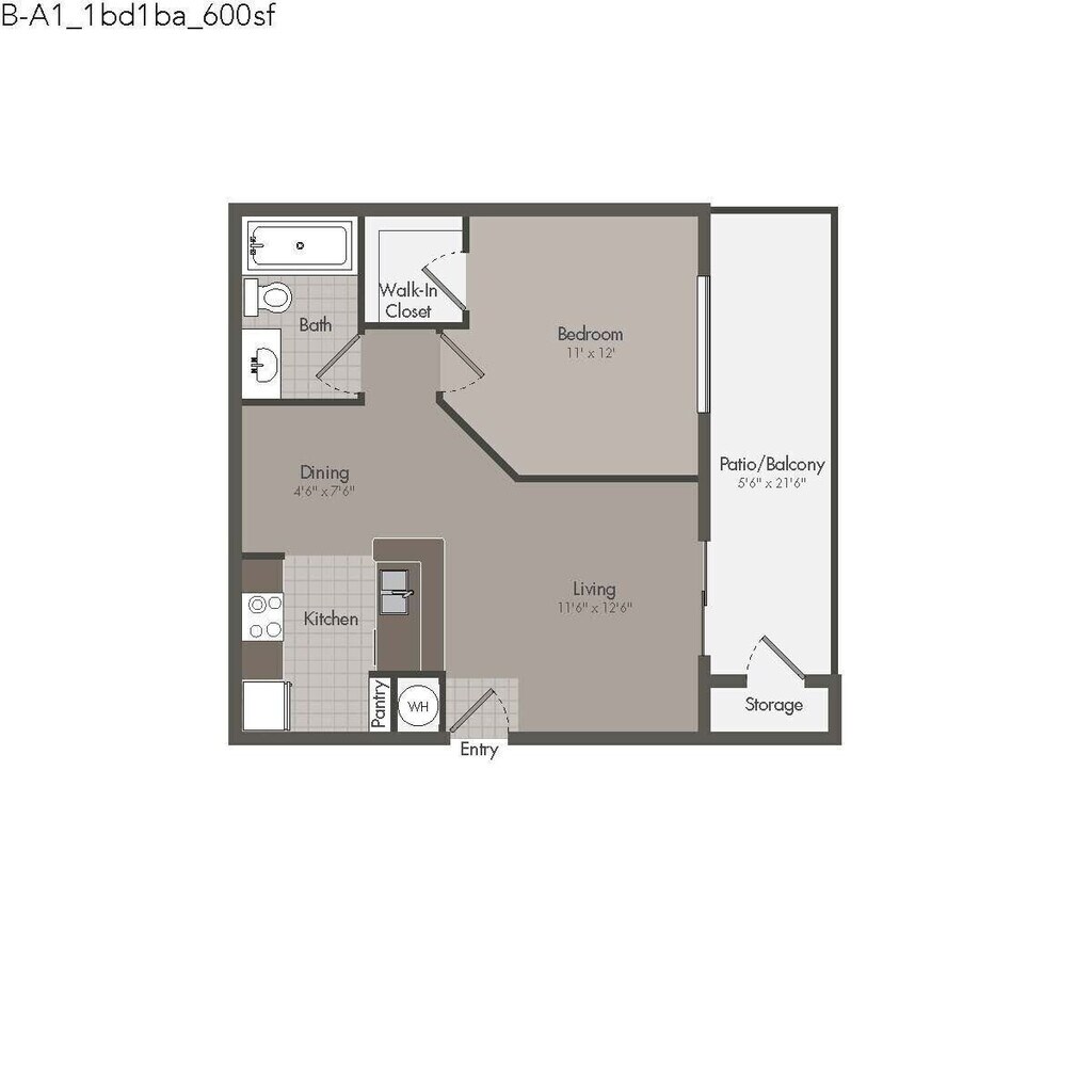 1 Dormitorio, 1 Baño, 600 pies²Disponible AhoraGalería del Modelo
