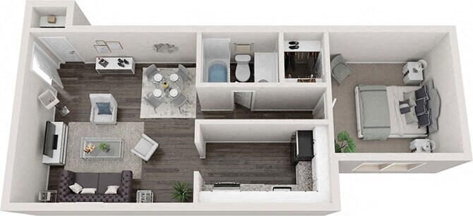1 Dormitorio, 1 Baño, 750 pies²Disponible AhoraEl más grandeEsta opción tiene las unidades más grandes para este modeloGalería del Modelo