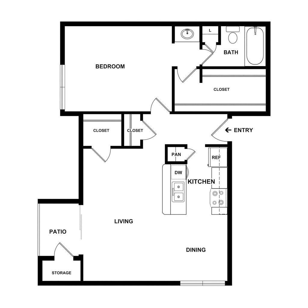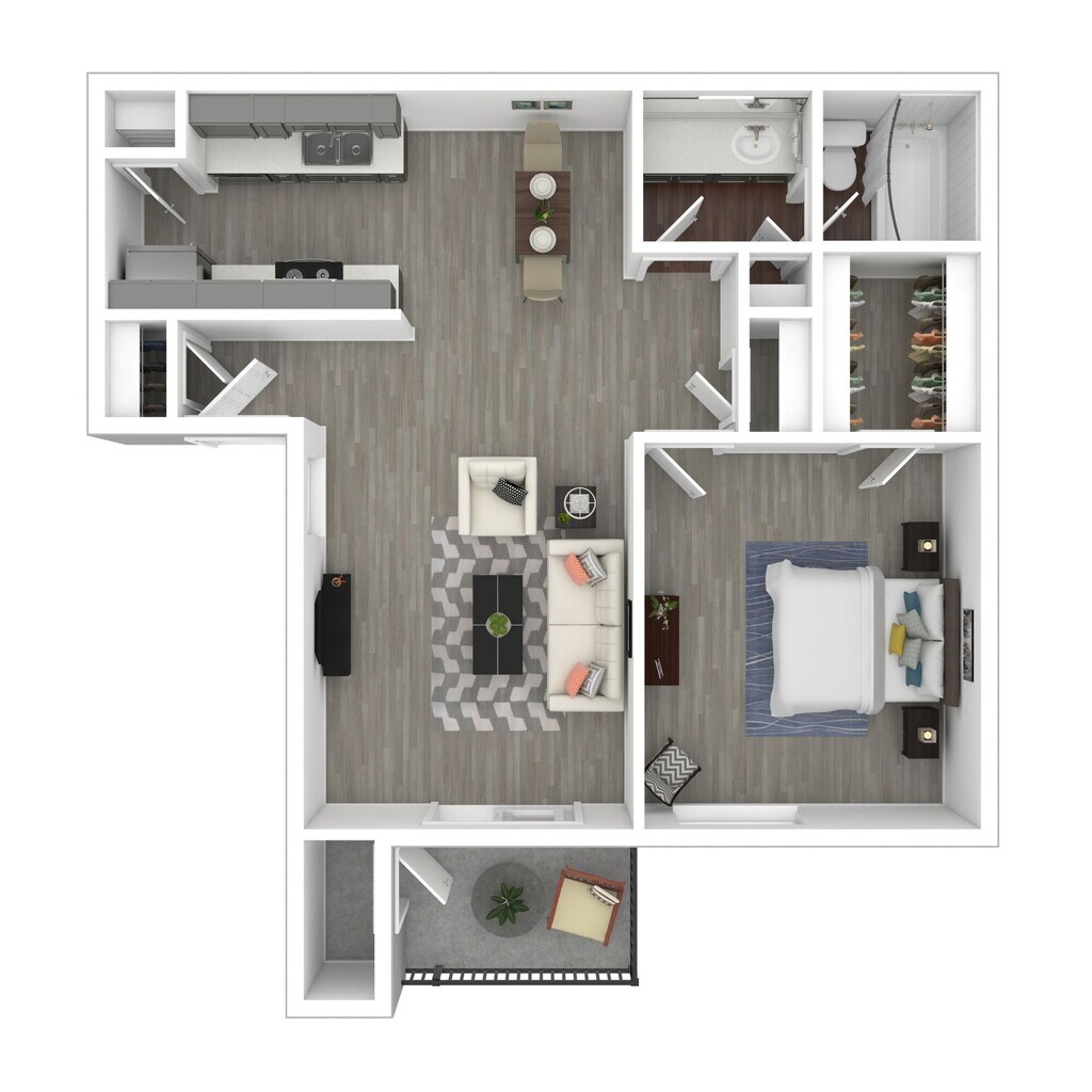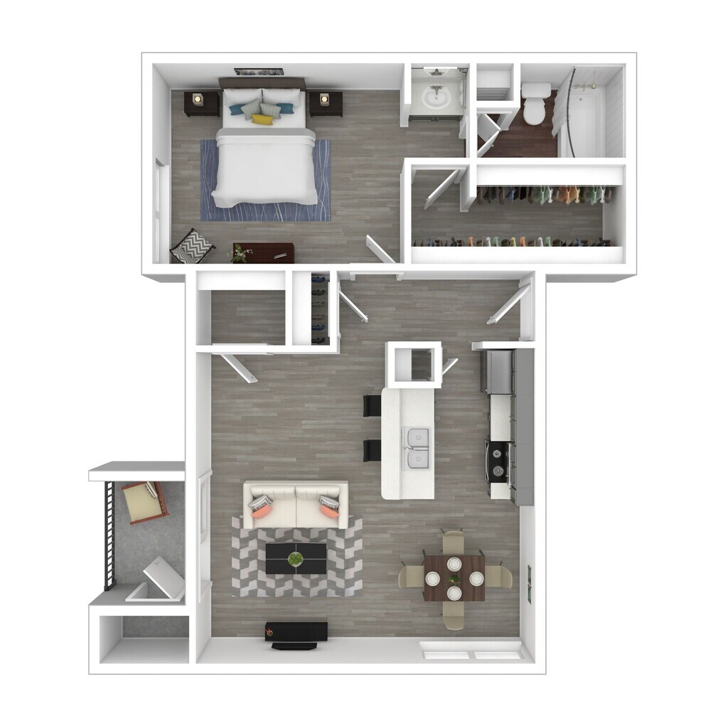 1 Dormitorio, 1 Baño, 739 pies²El más grandeEsta opción tiene las unidades más grandes para este modeloGalería del Modelo