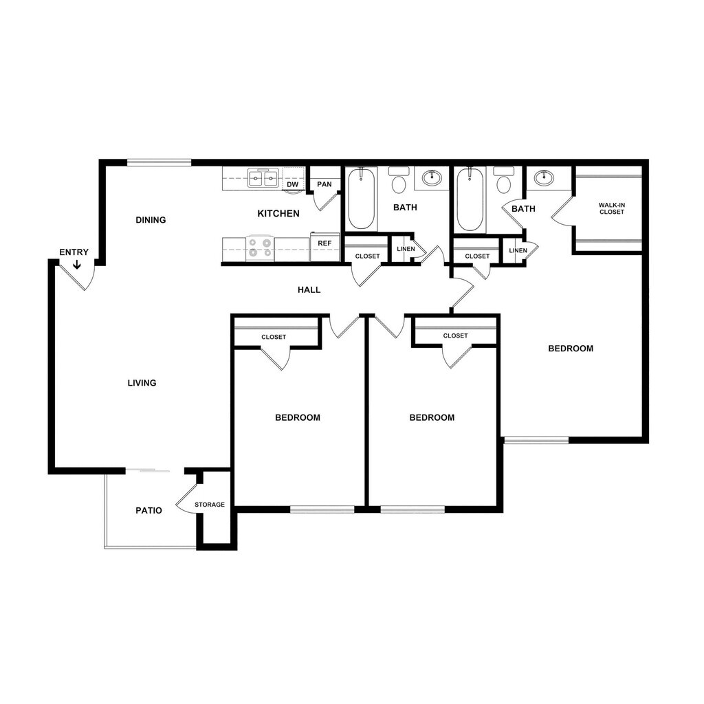 Modelo de apartamento: Southstead Three BedroomLlame para Precios3 Dormitorios, 2 Baños, 1140 sq ftNo Disponible![]()