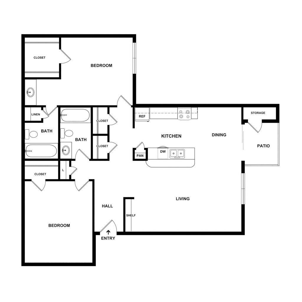 Modelo de apartamento: Southstead Two BedroomLlame para Precios2 Dormitorios, 2 Baños, 970 sq ftNo Disponible![]()