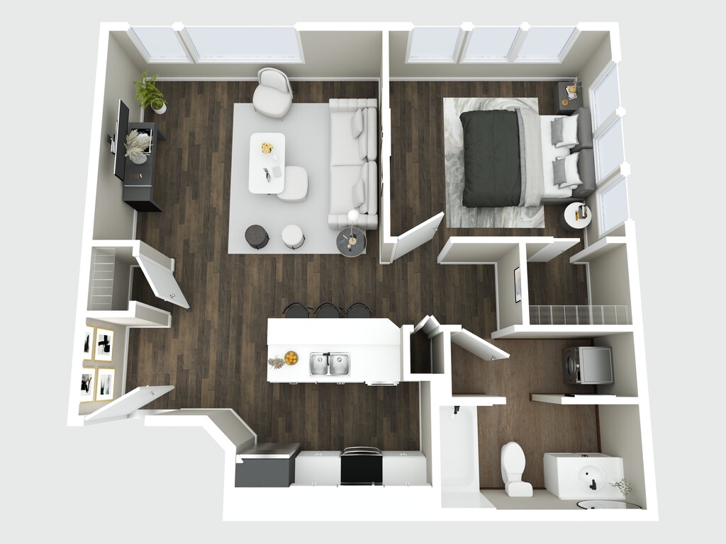1 Dormitorio, 1 Baño, 615-630 pies²Disponible AhoraGalería del Modelo