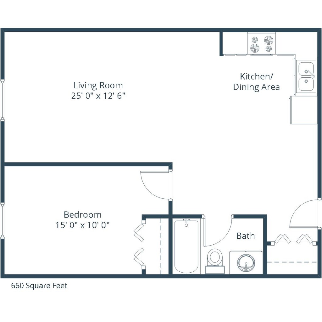 Modelo de apartamento: Two Bedroom 21A2 Dormitorios, 1 Baño, 901 sq ftDisponible November 17, 2025![]()