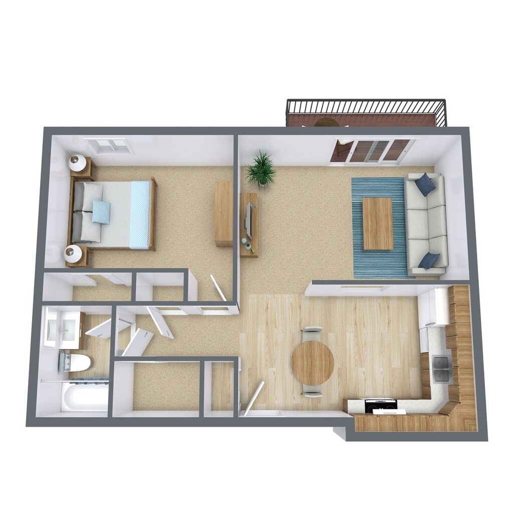1 Dormitorio, 1 Baño, 775 pies²Galería del Modelo