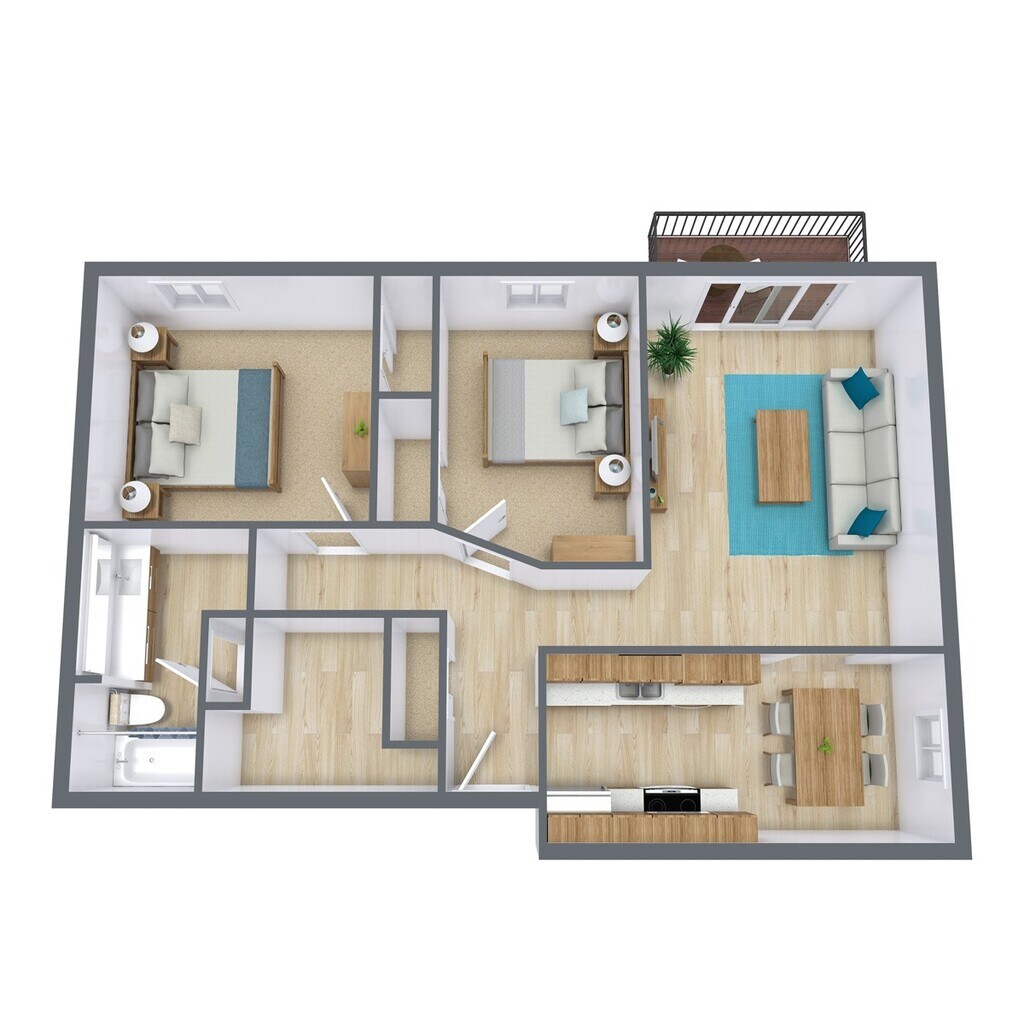 2 Dormitorios, 1 Baño, 975 pies²Disponible AhoraGalería del Modelo