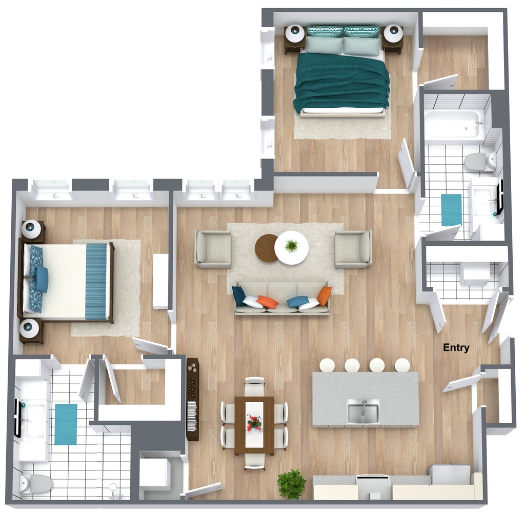 Modelo de apartamento: 1 Bedroom A2Desde $1,1031 Dormitorio, 1 Baño, 751 sq ftDisponible Ahora![]()