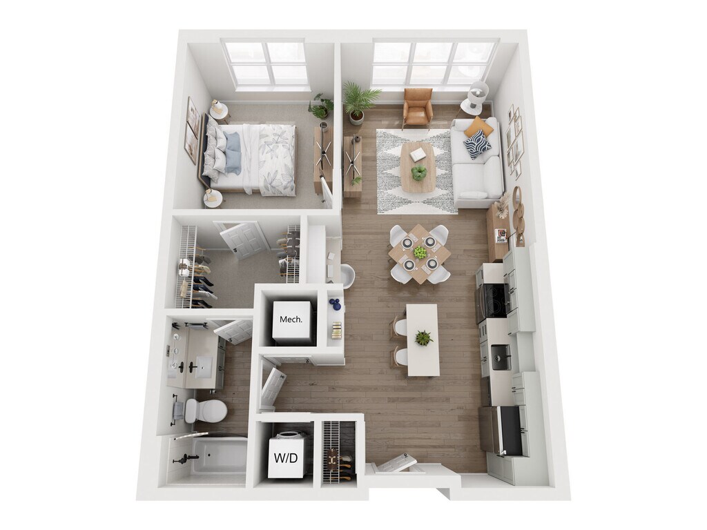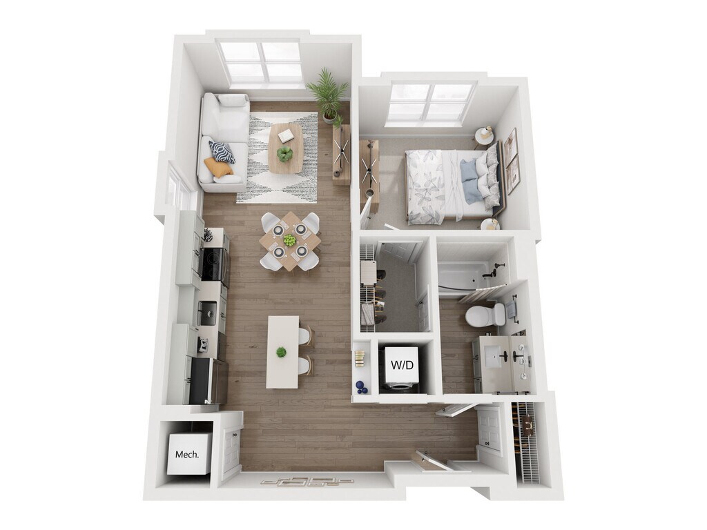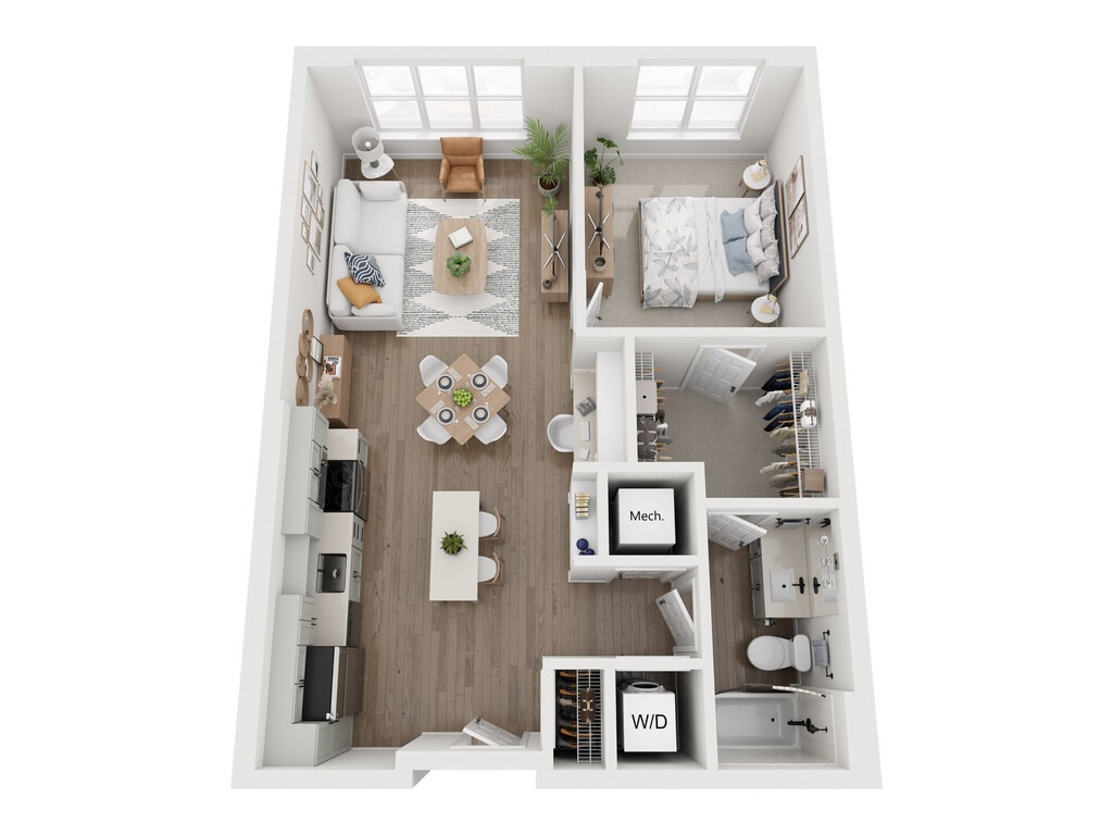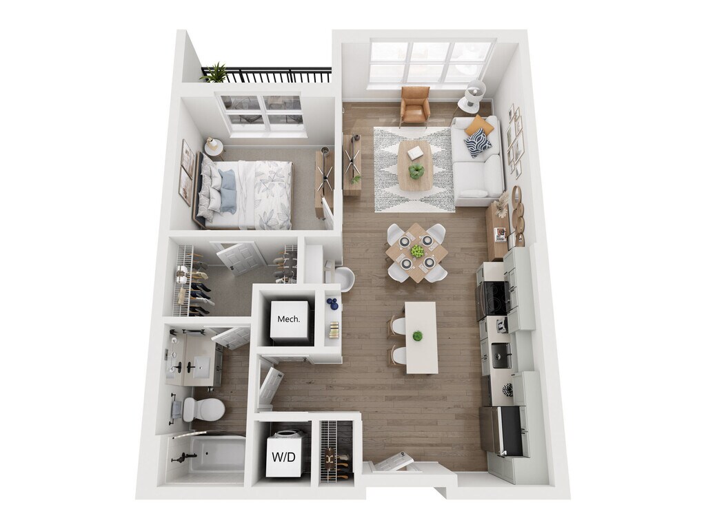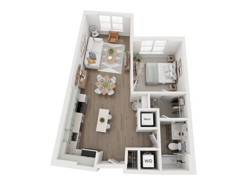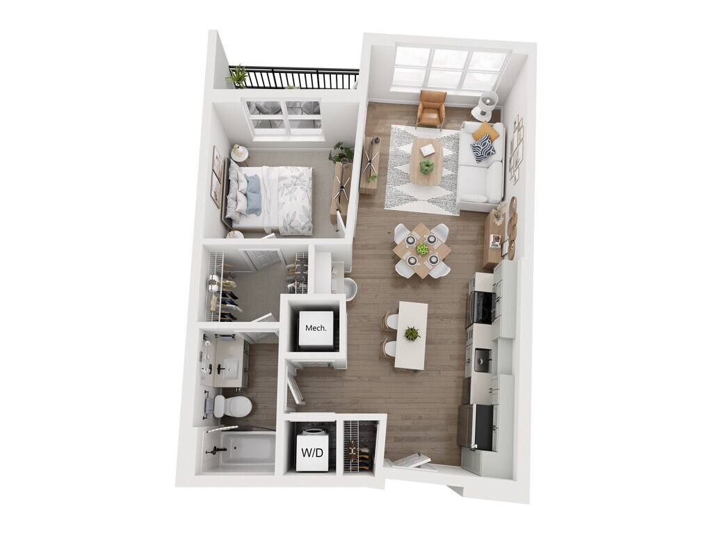 Modelo de apartamento: A7Desde $1,8001 Dormitorio, 1 Baño, 491 sq ftDisponible AhoraPlanosFotos![]()