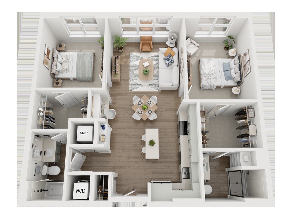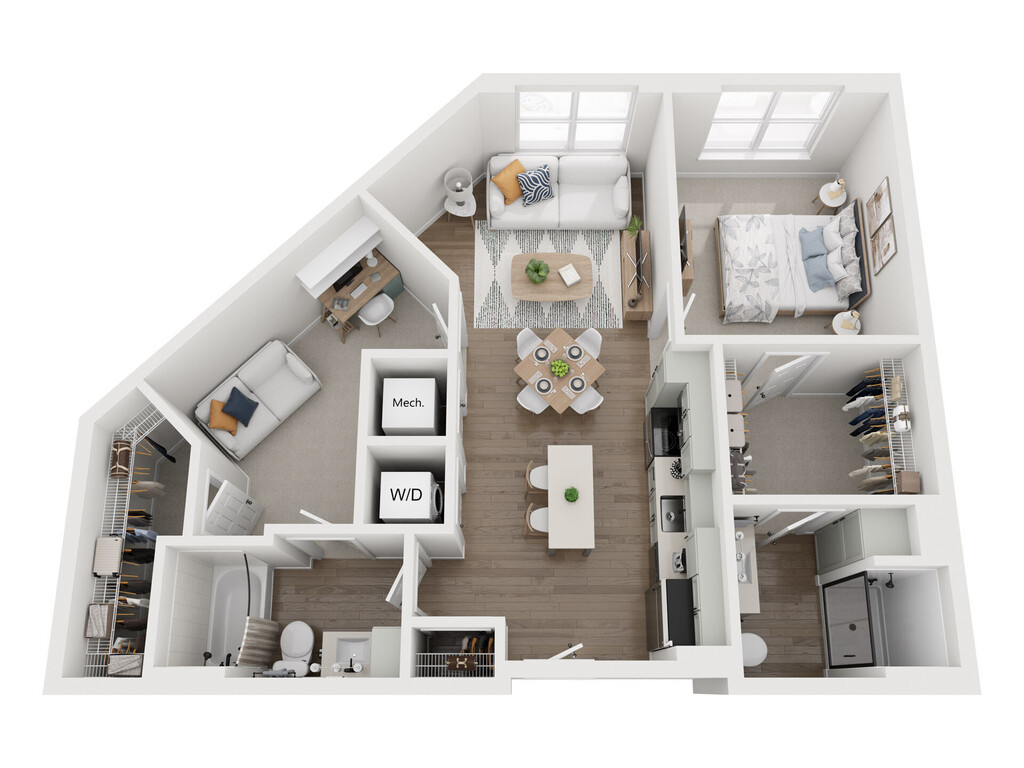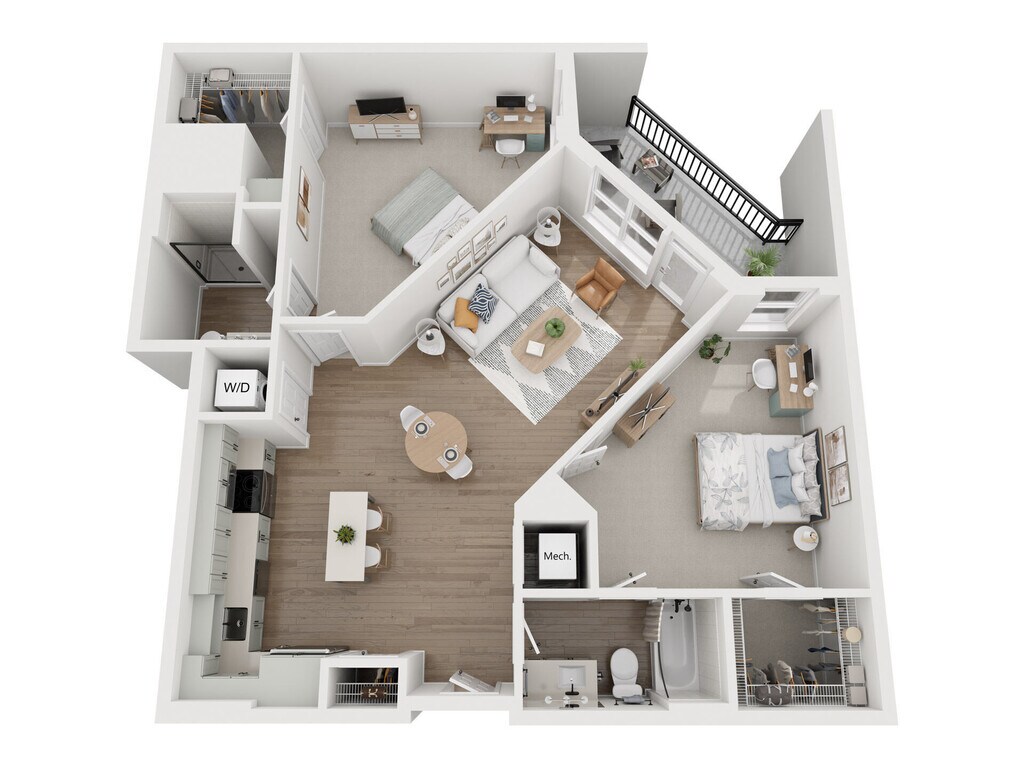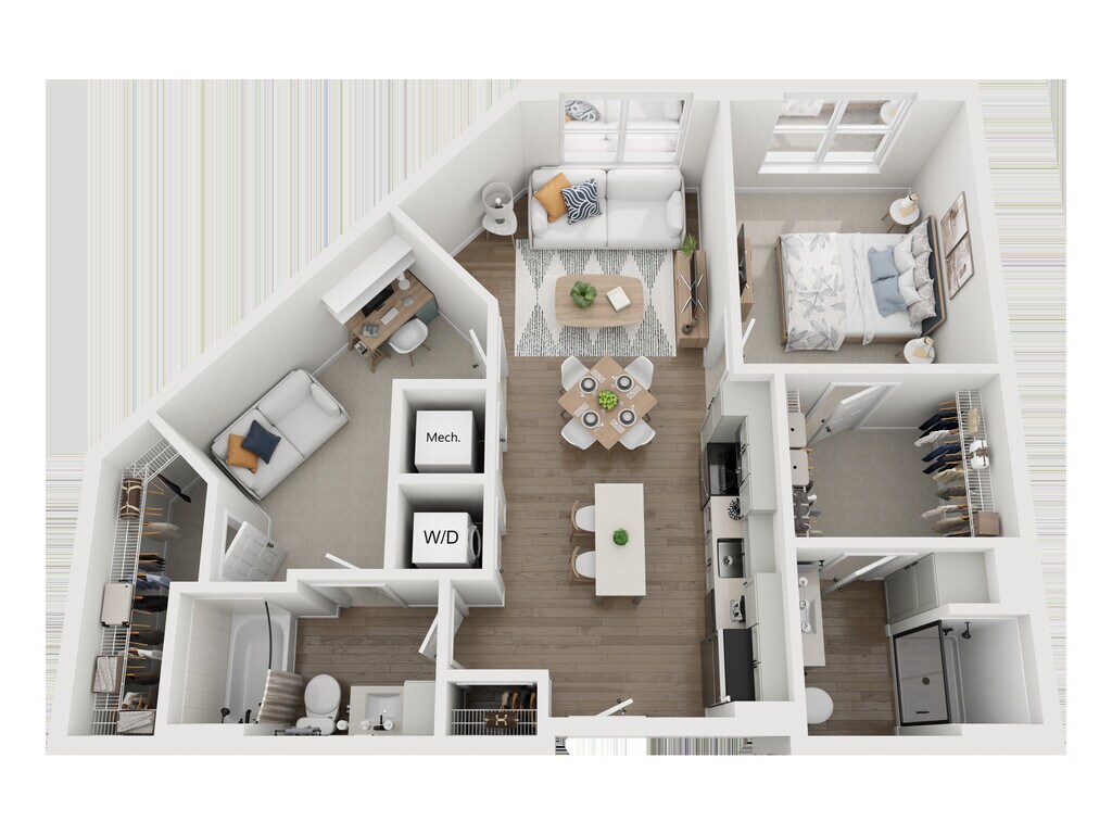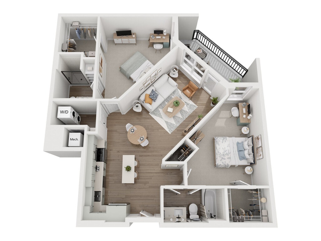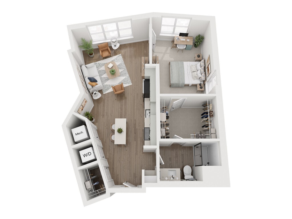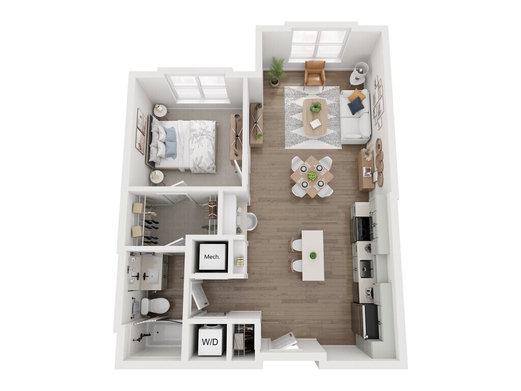 Modelo de apartamento: A7Desde $1,8001 Dormitorio, 1 Baño, 491 sq ftDisponible AhoraPlanosFotos![]()