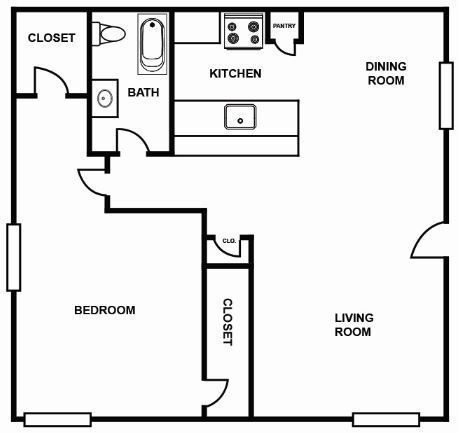 Modelo de apartamento: S3Estudio, 1 Baño, 520 sq ftNo DisponibleS3 - Plano 1 1 Dormitorio