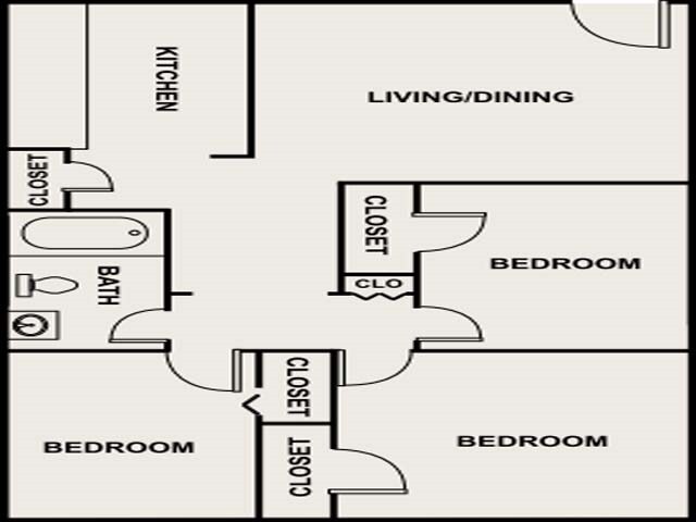 Modelo de apartamento: 2 Bedroom2 Dormitorios, 1 Baño, 890 sq ftNo Disponible![]()
