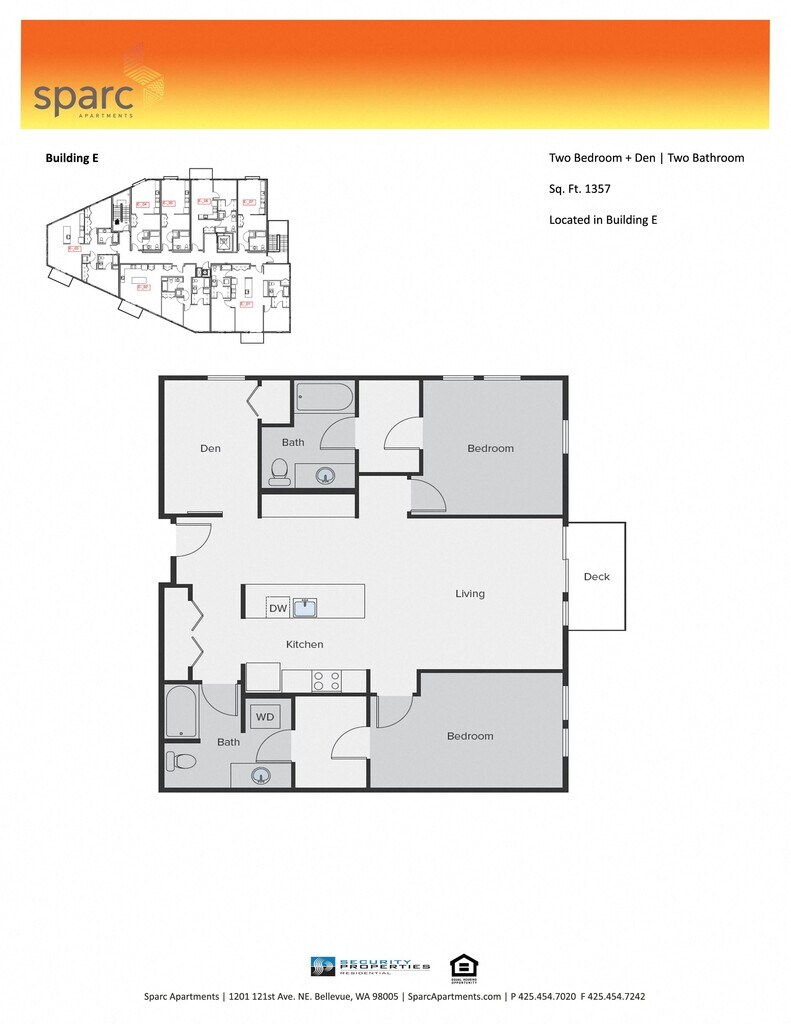 Bienvenido a casa a la moderna y vibrante comunidad de Sparc Apartments, ubicada en el distrito emergente de Spring en Bellevue, WA. Siente el latido de nuestro vecindario único, una combinación perfecta de vida urbana y suburbana. Elige entre diversos apartamentos tipo estudio o de una, dos y tres habitaciones, además de casas adosadas innovadoras y lofts de trabajo/vivienda. Nuestra ubicación central ostenta un acceso fácil a la I-405 y al campus de Microsoft, y se encuentra a minutos del centro de Bellevue, Kirkland y Redmond. Aquí en Sparc Apartments, nos esforzamos por ofrecer servicios de primera para satisfacer las necesidades de todos nuestros residentes, desde las ventanas del piso al techo en apartamentos seleccionados hasta las encimeras de cuarzo en la cocina y los baños y los pisos de tablones de vinilo. Nuestro complejo es el corazón de Sparc, y nuestros muchos espacios sociales lo demuestran, incluso el salón con WiFi, nuestra sala de eventos con TV y nuestra propia terraza en la azotea. Sabemos lo ocupados que están nuestros residentes; por eso, nuestra meta es simplificar sus vidas por medio de servicios convenientes como almacenaje y estación de reparación para bicicletas, e incluso una estación para bañar a tus mascotas. Ojalá hayamos despertado tu interés. ¡Echa un vistazo a nuestros servicios, planos de planta, galería de fotos y folleto electrónico para comenzar a vivir tu vida soñada hoy mismo!
