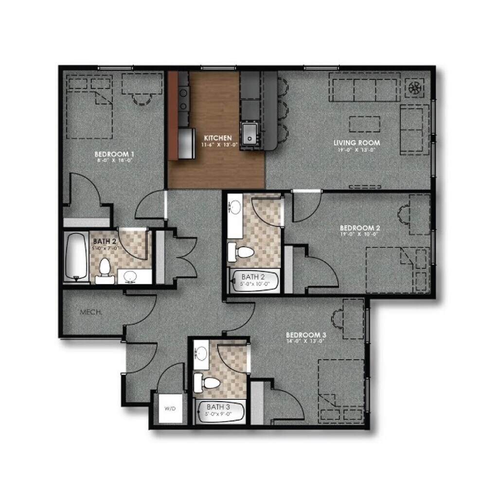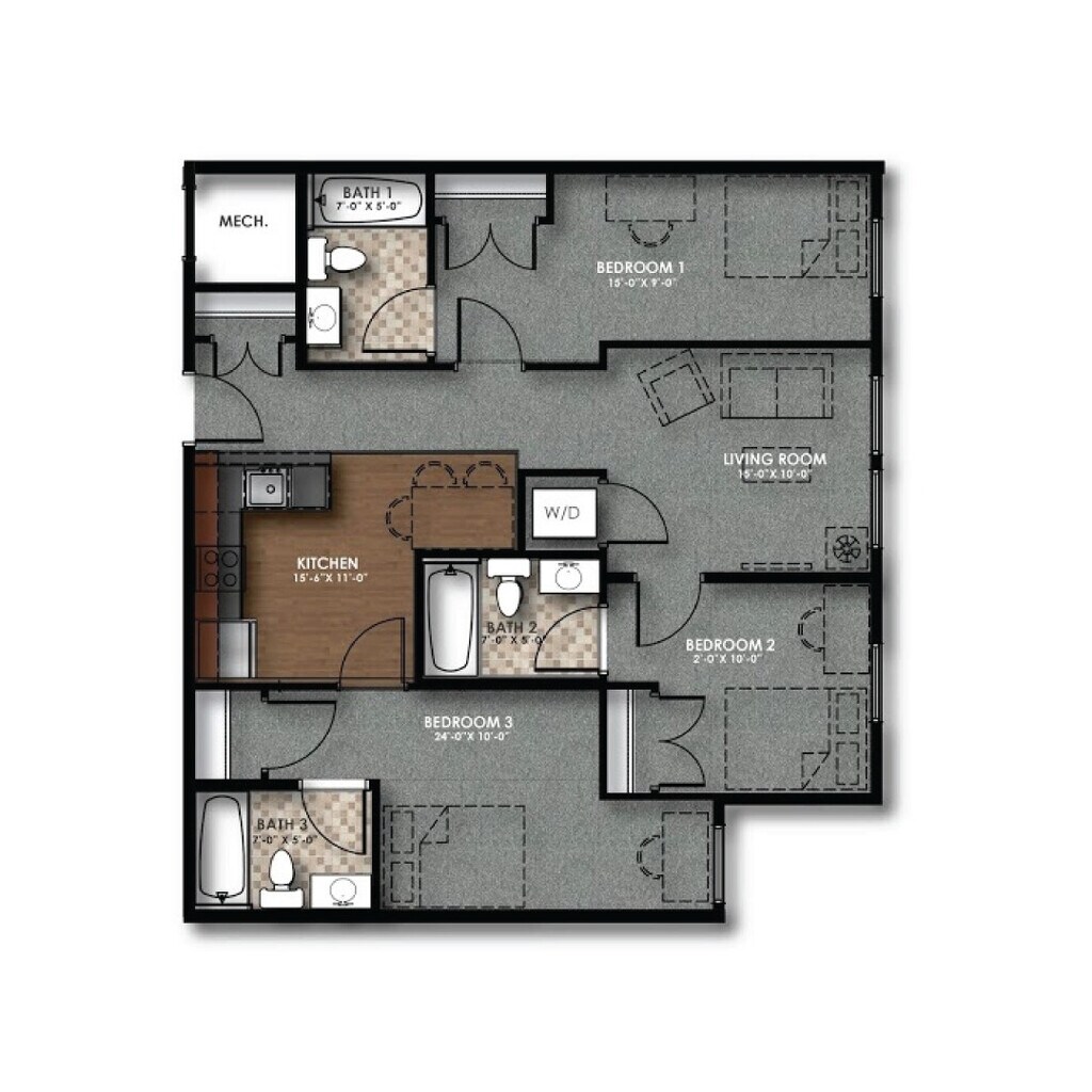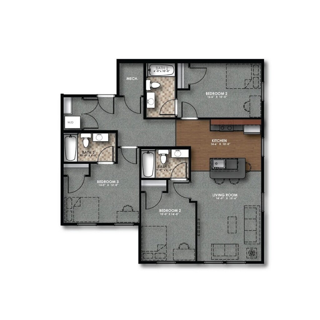 Slate - Plano 1 3 Dormitorios