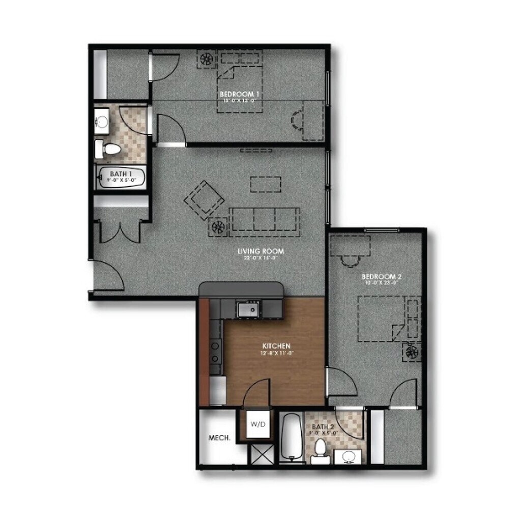 2 Dormitorios, 2 Baños, 1054 pies²Disponible AhoraEl más grandeEsta opción tiene las unidades más grandes para este modeloGalería del Modelo