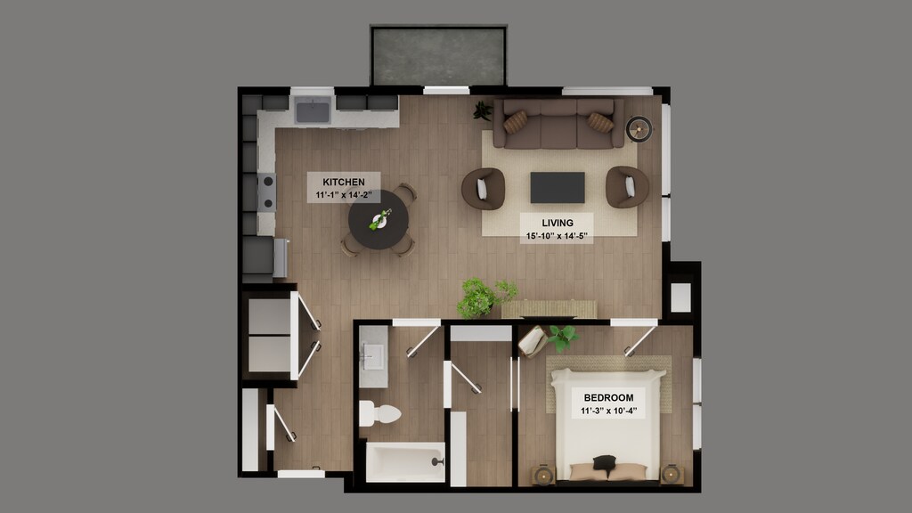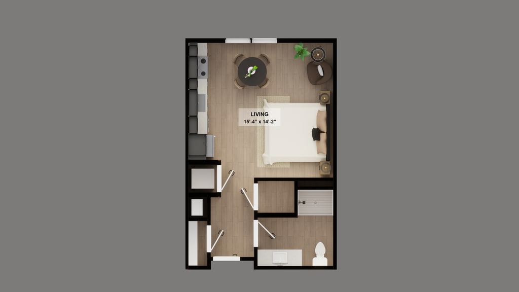 SUITE - Plano 6 Unidad de apartamento: 108Modelo de apartamento: SUITE$1,2501 Dormitorio, 1 Baño, 657 sq ftDisponible April 1, 20261 BED A